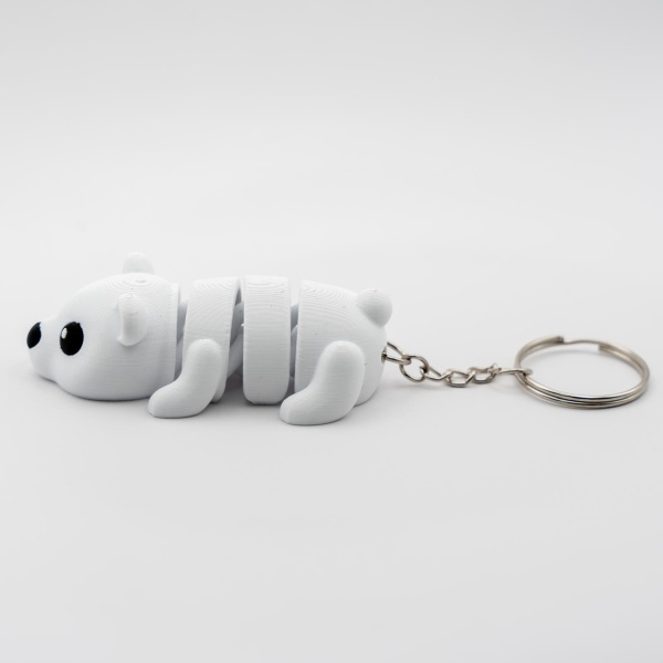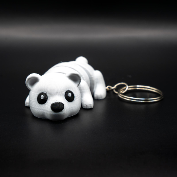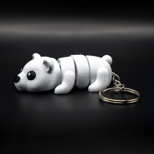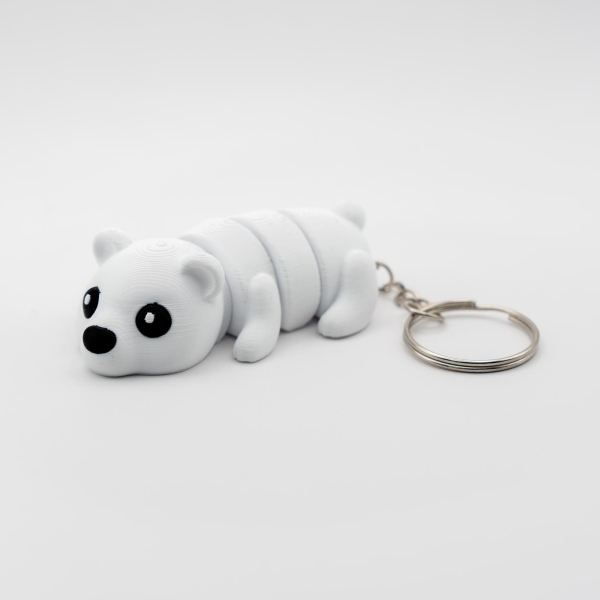 Naj vas očara ljubek Fleksi polarni medved, popoln dodatek za vaše ključe ali nahrbtnik! Ta 3D-natisnjen obesek je zasnovan tako, da se njegovi segmenti prosto premikajo, kar mu daje igriv in edinstven videz. Njegova bela barva in srčkane črne oči dodajo pridih prikupnosti, medtem ko kovinska verižica omogoča enostavno pritrditev.